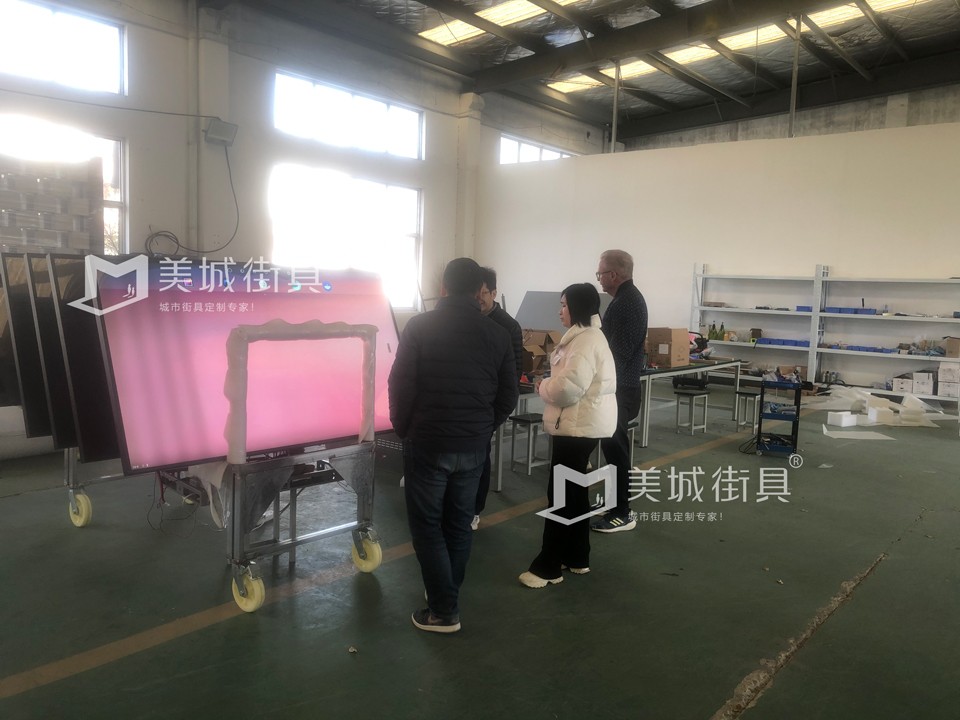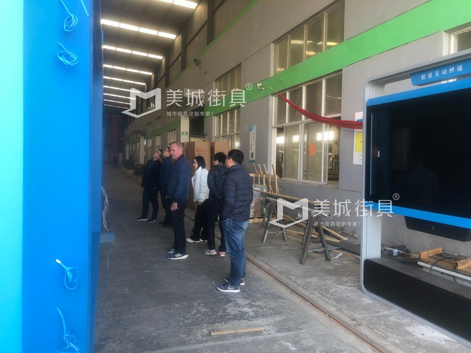 2023.11.28日,國外友人蒞臨我公司項目考察,參觀了候車亭、智能充電座椅、垃圾房等設施,經過洽談,雙方達成了合作,下單成功。