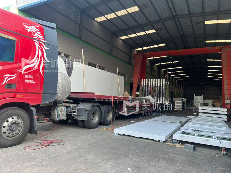 美城街具供應候車亭發貨記錄,以下是公交候車亭發貨現場圖。