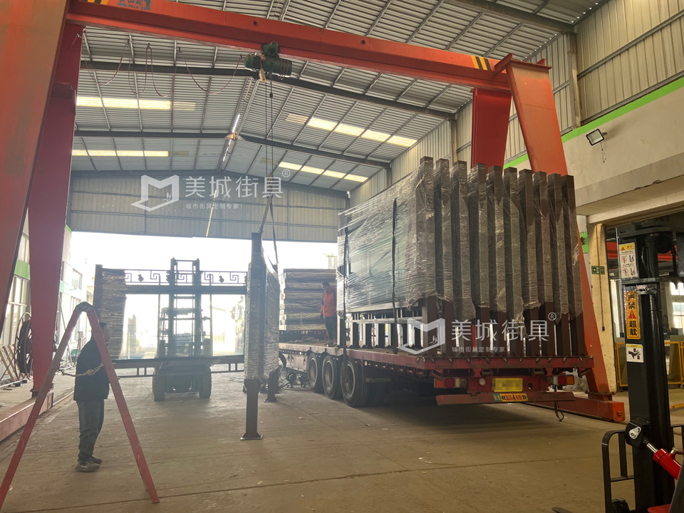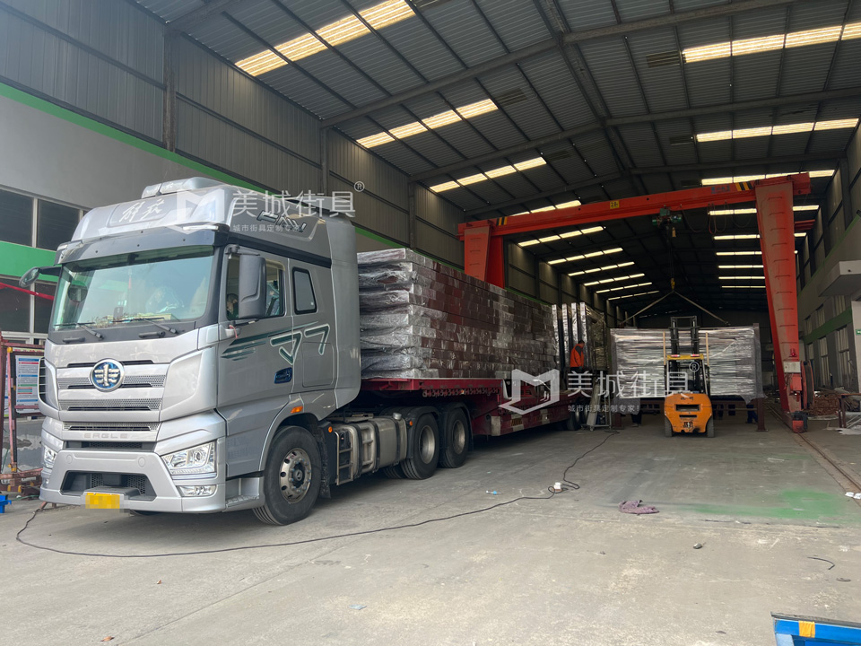 江蘇美城街具為新疆定制公交候車亭第五車發貨案例